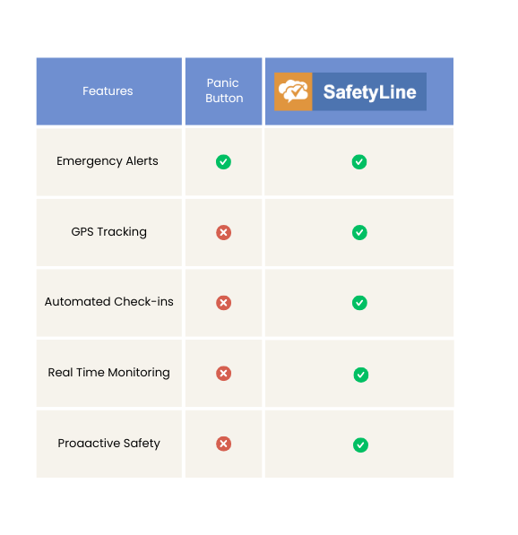 A lone worker solution offers many advantages over a panic button. For example, a lone worker solution provides a proactive approach to employee safety, whereas a panic button is a reactive measure. A lone worker solution lprovides real-time monitoring and automated check-ins, ensuring that employees are always safe. Additionally, a lone worker solution offers GPS location tracking, allowing employers to pinpoint the exact location of an employee in distress.